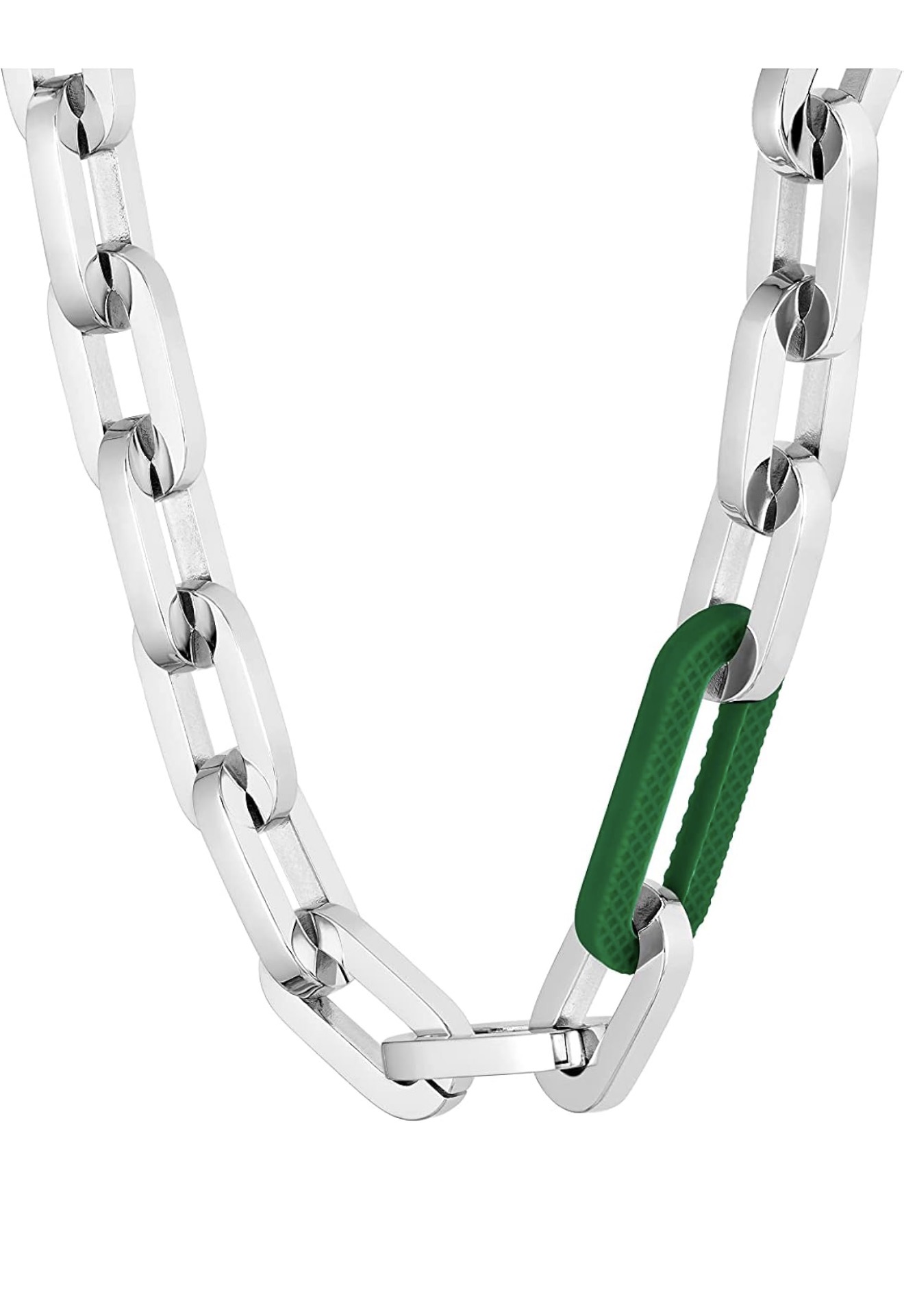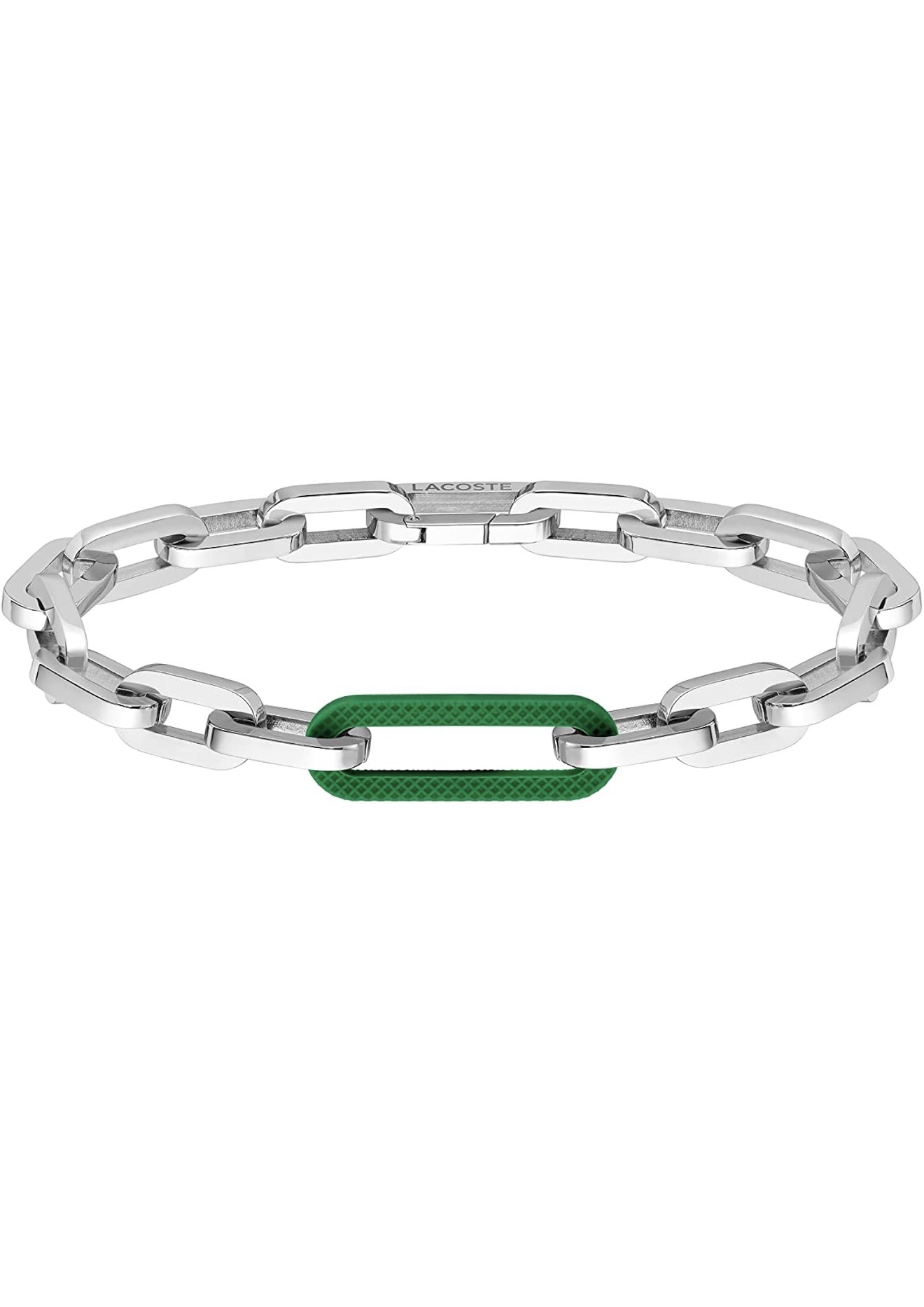 Lacoste 2040103 Jewelry Ensemble Men's Stainless Steel and Green Silicone Link/Chain Bracelet Silver