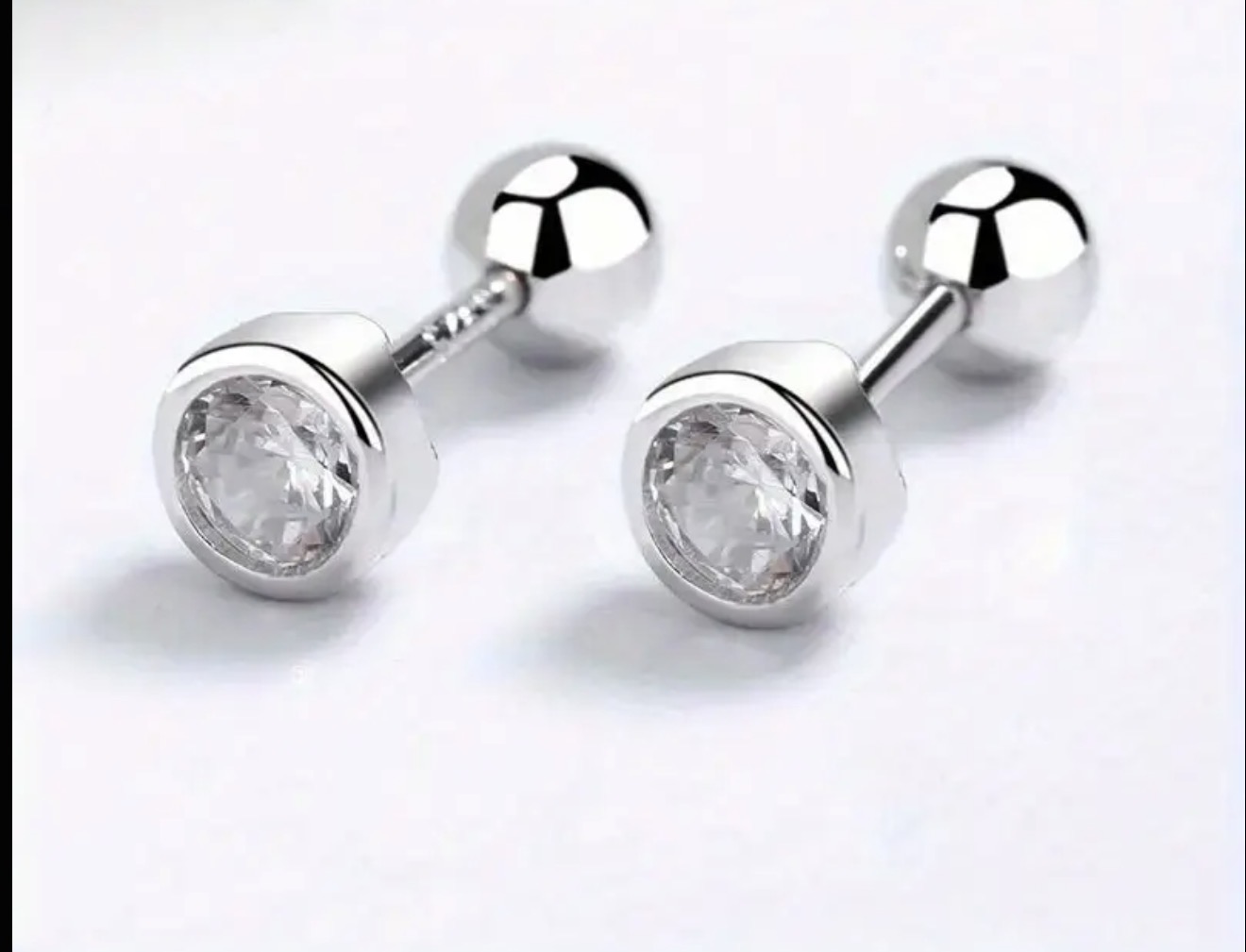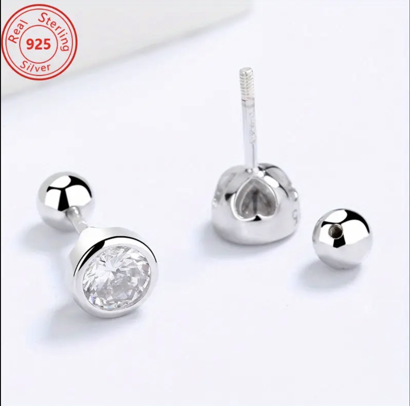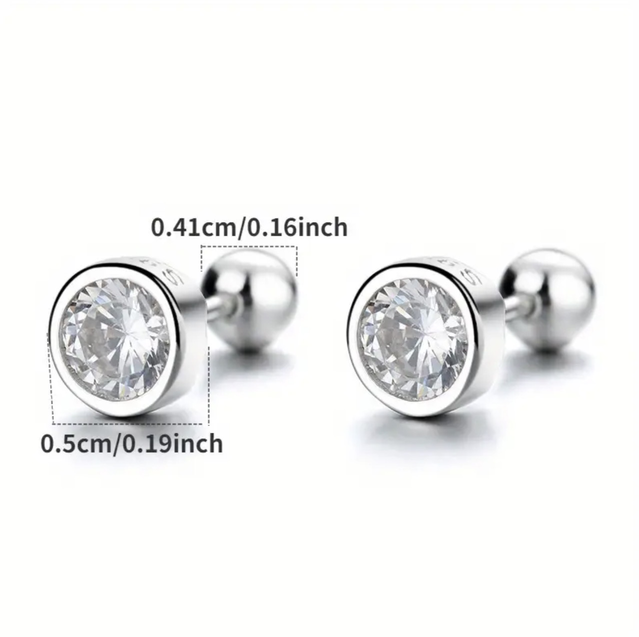 Sterling Silver 925 Bezel Basket Set Screw Back Earrings Round Cut CZ